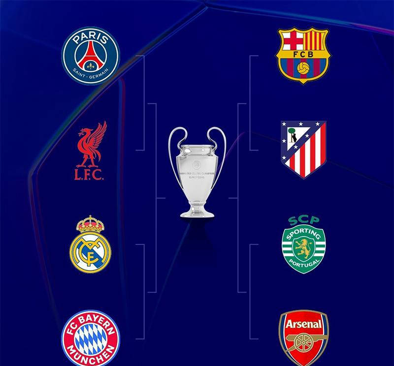 至此,欧冠八强名单尘埃落定,来自五个联赛,其中西甲三支球队悉数晋级,成为最大的赢家;英超保住两席;德甲、法甲和葡超各有一支球队闯入。此外,意甲成为唯一未获得八强席位的传统五大联赛,而非五大联赛中只有葡萄牙体育跻身本次八强。从对阵形势看,上半区尤为强大,巴黎圣日耳曼迎战利物浦,皇马与拜仁慕尼黑狭路相逢,这四队合计拥有28次欧冠冠军,其中包括卫冕冠军。下半区则略逊一筹,巴塞罗那是唯一具备夺冠经历的球队,除此之外马德里竞技、阿森纳以及葡萄牙体育均无夺冠史,但都有自己独特的历史积淀和耀眼表现。